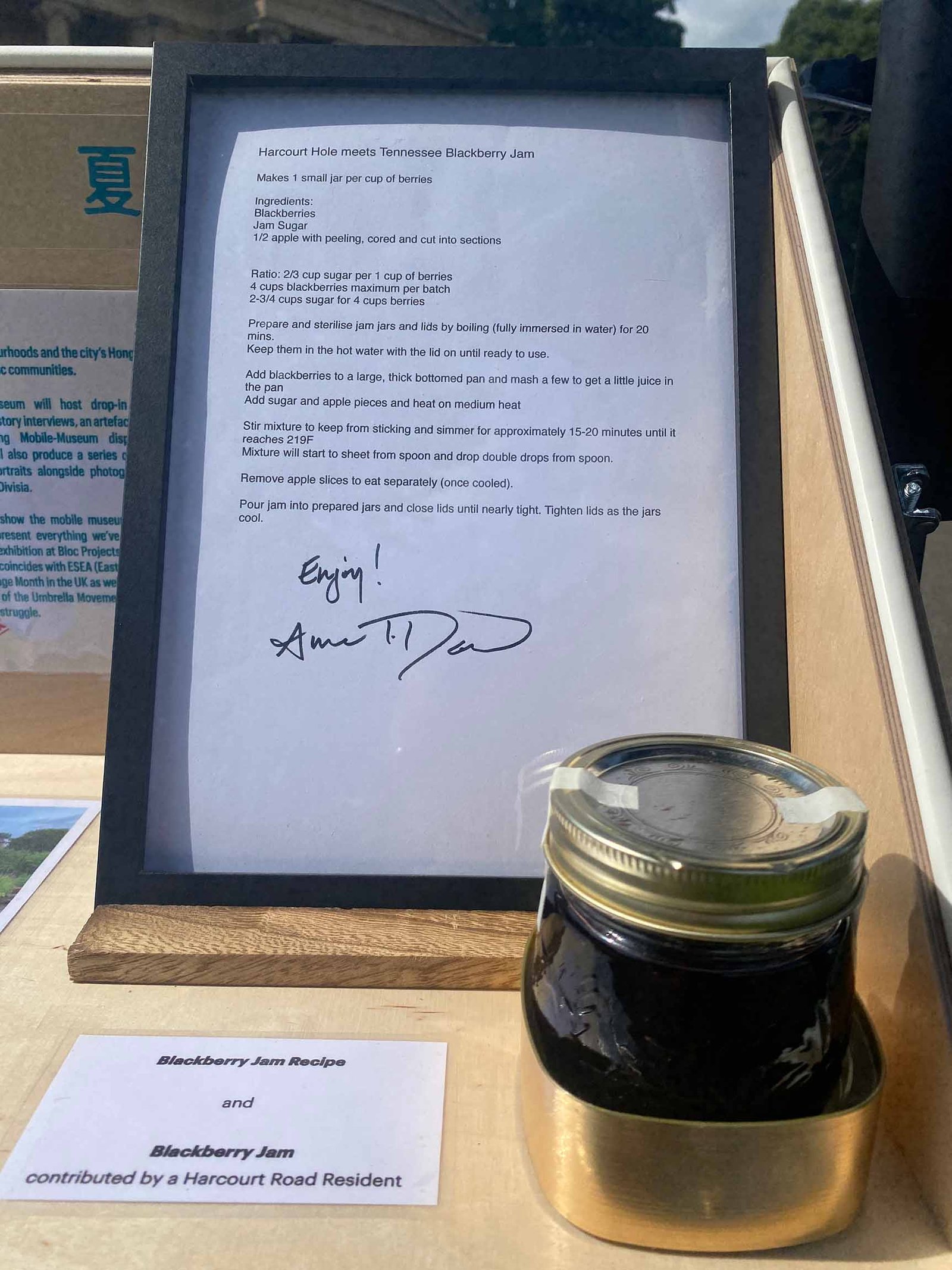 This is a jar of blackberry jam made with blackberry from Harcourt Hole, with a Tennessee recipe, contributed by a Harcourt Road resident to the Mobile Museum