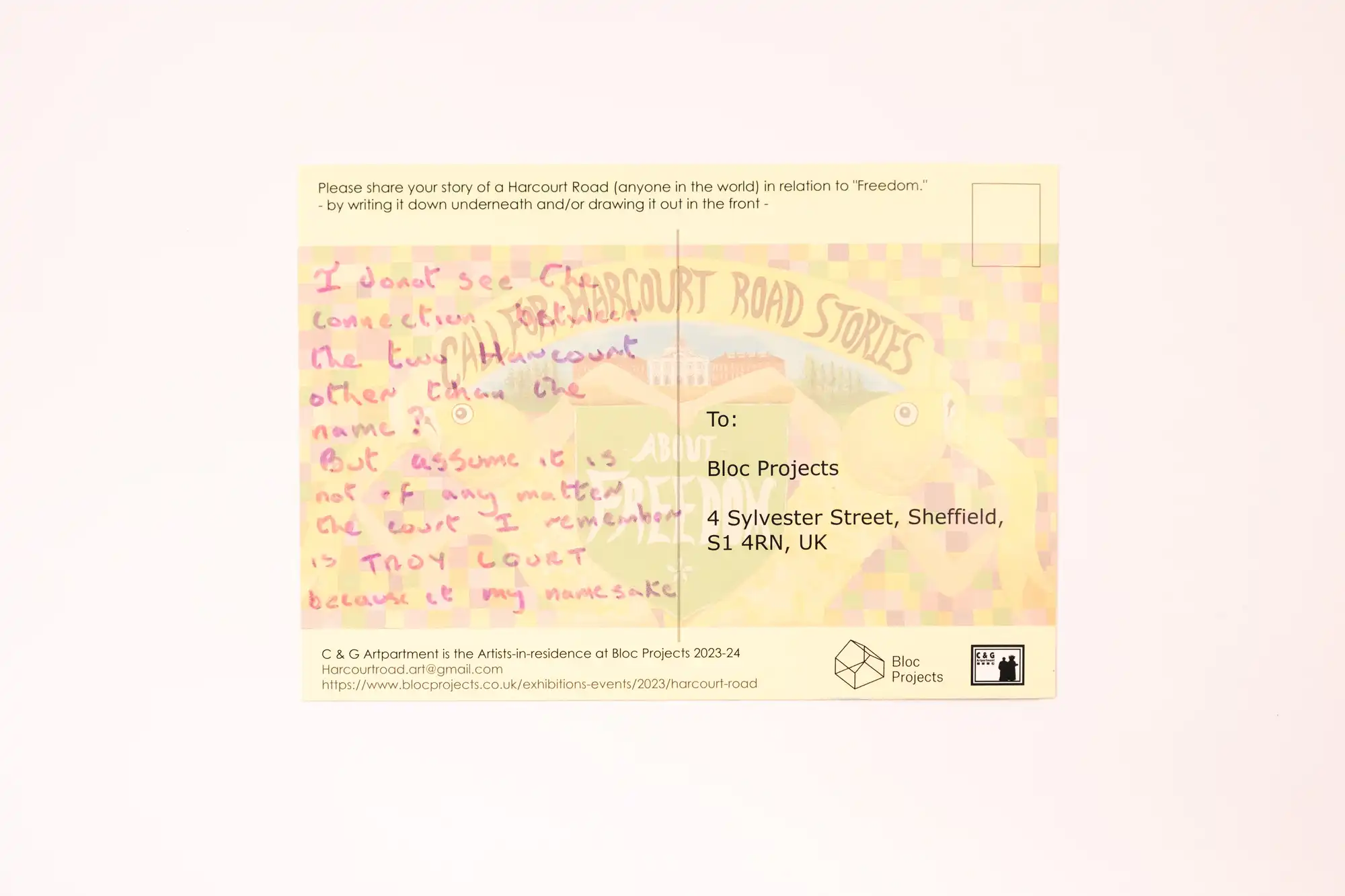 Gallery address: Bloc Projects, 71 Eyre Lane, Sheffield S1 4RB